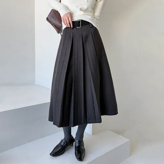 【ボトムス】レディース 秋冬 Aライン ミディ丈 ハイウエスト プリーツ スカート【JZシリーズ】