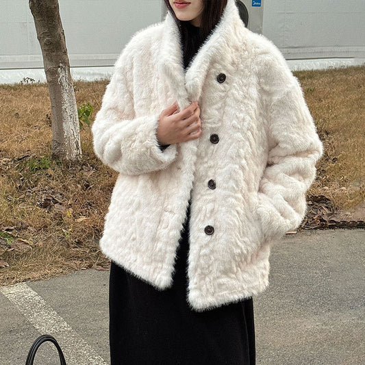 【トップス】スタンドカラー 上品 フェイクファー ムートン風 レディース 冬用 厚手 防寒コート【JZシリーズ】