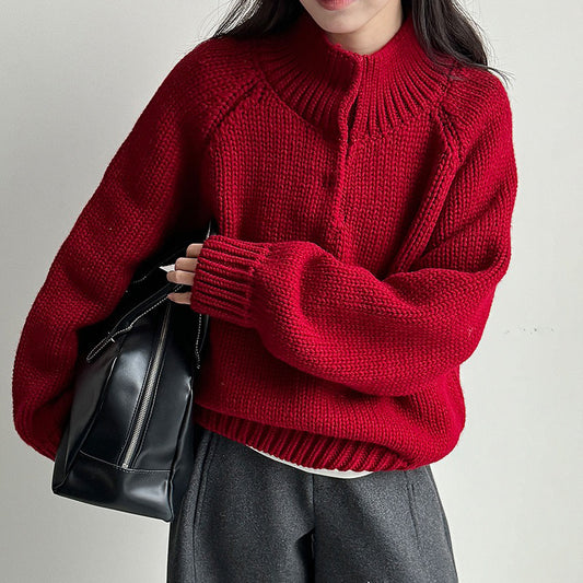 【トップス】韓国風 ハーフタートルネック レディース 冬 新作 ルーズ ニット プルオーバー 厚手【JZシリーズ】