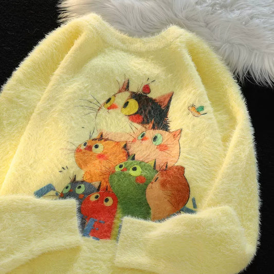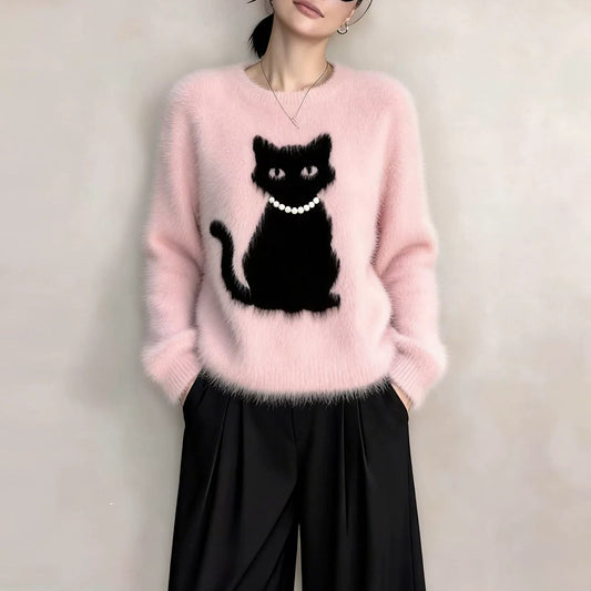 【トップス】ゆったり 小众 上品 クルーネック フェイクミンクニット レディース 猫 ニットセーター