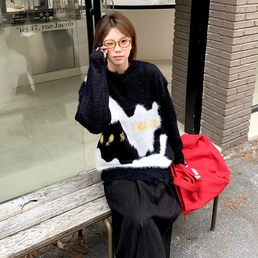 【トップス】ファッション ストリート 猫 合わせやすい ニットセーター