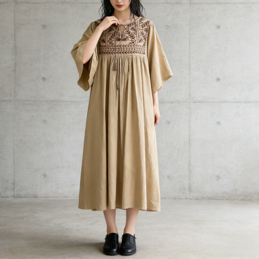 【ワンピース】レトロ 刺繍 ほっそり見え ワンピース【JZシリーズ】