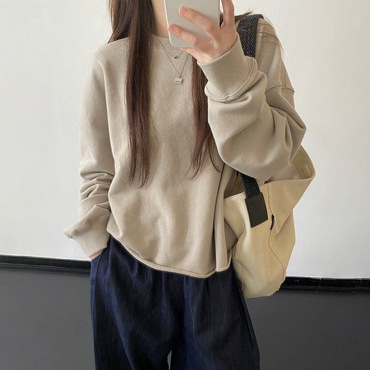【トップス】ベーシック無地 クルーネックスウェット ショート丈 長袖 ゆったり 春秋 パーカー【FCシリーズ】