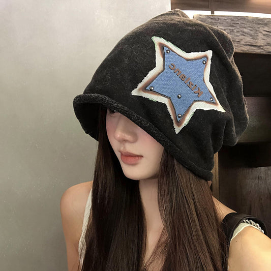 【グッズ】アメリカンレトロ ⭐星柄 ニットキャップ 秋冬 大きめサイズ 小顔効果 レディース ハット