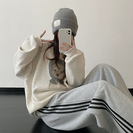 7カラー【トップス】スケート 猫柄 プリント クルーネックスウェット 秋冬 ルーズ 男女兼用 パーカー【FCシリーズ】
