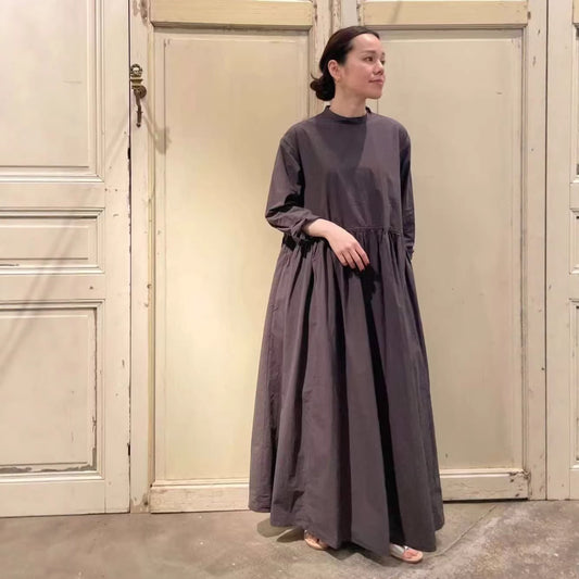【60%OFF⭐️早い者勝ち】【ワンピース】ヴィンテージ ロング ノースリーブ ワンピース プリーツデザイン パッチワーク ゆったり レイヤード スタイル【AHシリーズ】