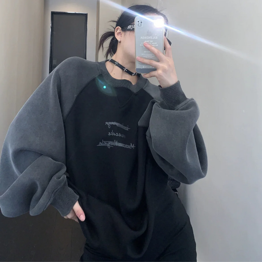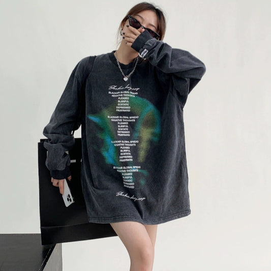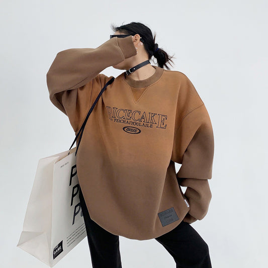 【トップス】春秋冬 ビンテージ風 グラデーション 刺繍 クルーネック スウェットシャツ パーカー【FCシリーズ】