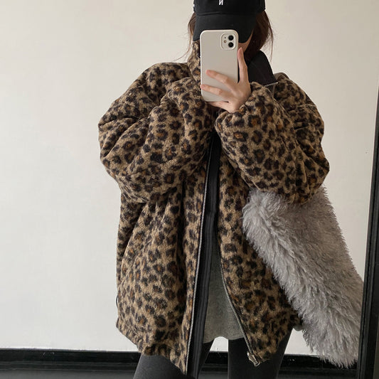 【アウター】リバーシブル レオパード柄 ボア 防寒 厚手 ワークジャケット レディース 秋冬 綿入れコート 【FCシリーズ】【15~20内発送】