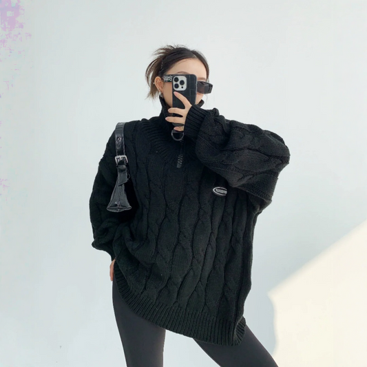 【トップス】ルーズ ファスナー付き 立襟 春 秋 冬 プルオーバー ニット セーター 【FCシリーズ】