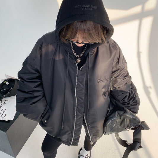 【アウター】 バイカー風レトロ フード付き 🔥 ルーズ中綿ジャケット 厚手 綿入れコート【FCシリーズ】【15~20日発送】