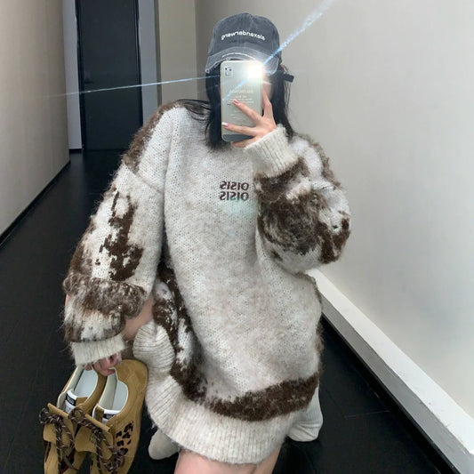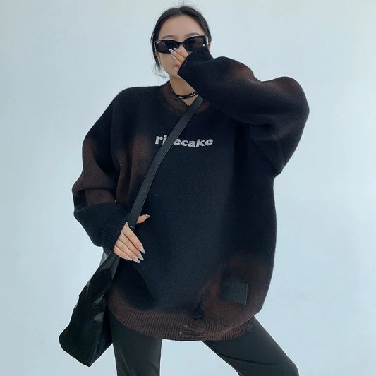 【トップス】秋冬 流行の予感 アルファベット ヴィンテージ加工 厚い保温 ニットセーター【FCシリーズ】