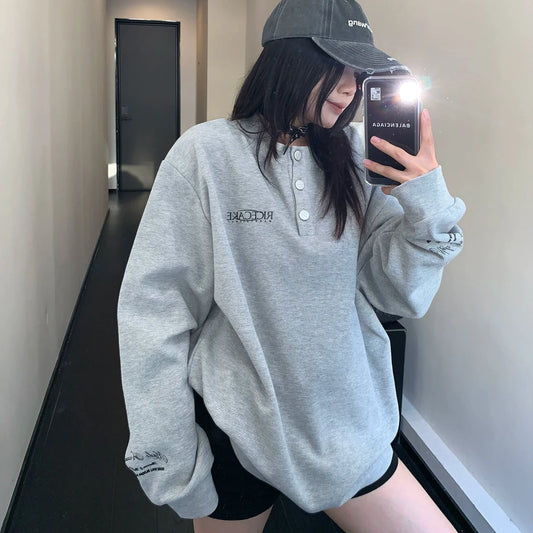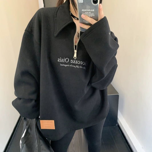 【トップス】ヴィンテージ ポロカラー スウェット レディース ゆったり カジュアル ユニセックスペアコーデ パーカー【FCシリーズ】