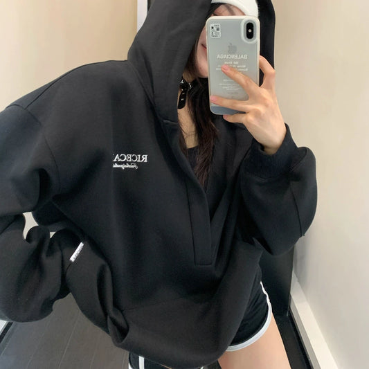 【トップス】秋冬 oversize 刺繍 Vネック ゆったり フード付きパーカー【FCシリーズ】