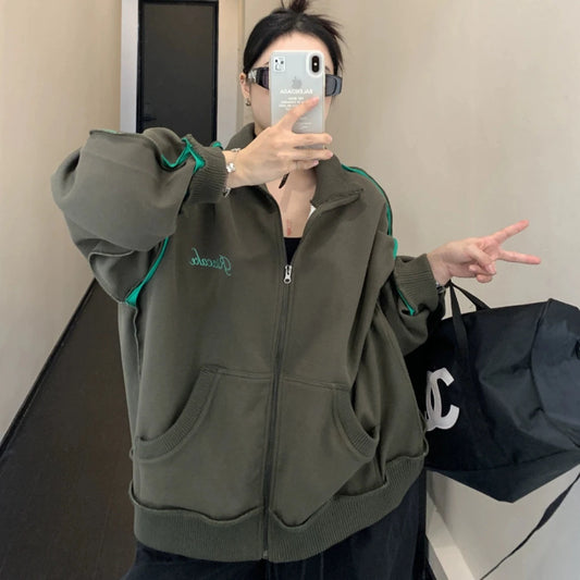 【アウター】レトロ 春秋 oversize 刺繍 パーカージャケット【FCシリーズ】