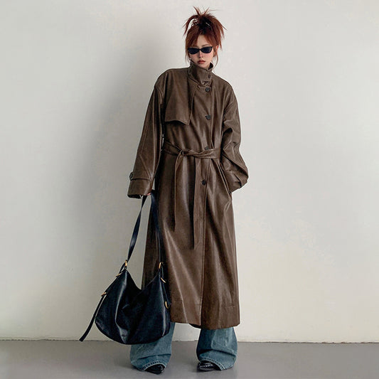 【アウター】2025新作 イングランド風 ゆったり スタンドネック PU コート【FCシリーズ】