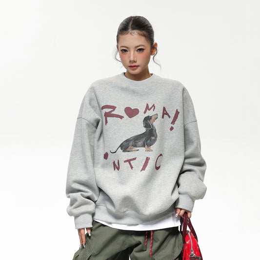 【トップス】趣味たっぷりのドッグプリント😊 レトロ ゆるっと着られる クルーネックスウェット レディース パーカー【FCシリーズ】