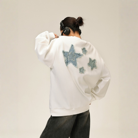 【トップス】星形ワッペン アメリカンヴィンテージ風 ゆったりシルエット ラウンドネック パーカー 【FCシリーズ】