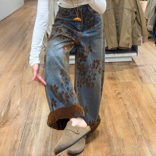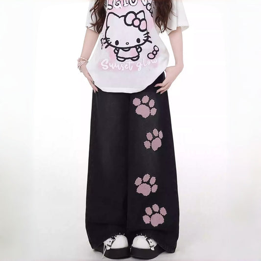 【ボトムス】猫の肉球 刺繍 海外トレンド 合わせやすい ワイドパンツ【FCシリーズ】
