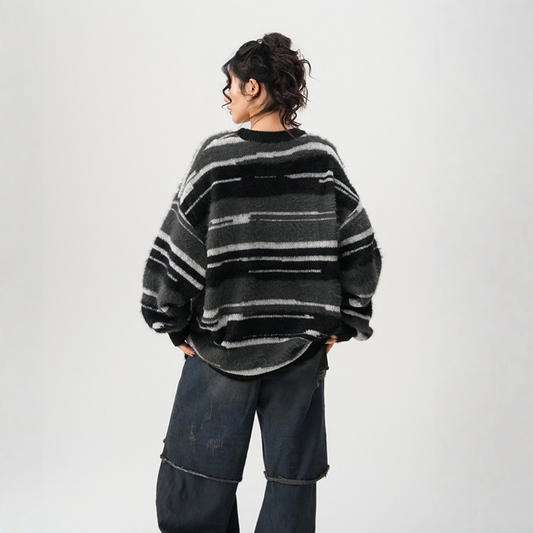 【60%OFF⭐️先行スタート!】【トップス】春 秋 冬 ストライプ柄 配色 ルーズ ニット ラウンドネック セーター 【FCシリーズ】