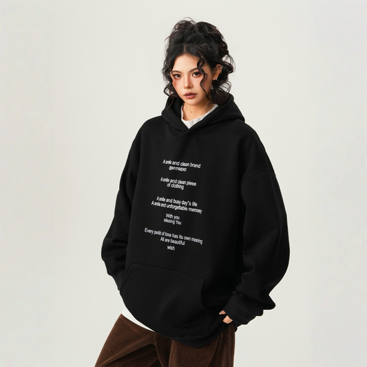 【トップス】秋冬 オーバーサイズ 刺繍 裏起毛 フード付き スウェットシャツ パーカー【FCシリーズ】