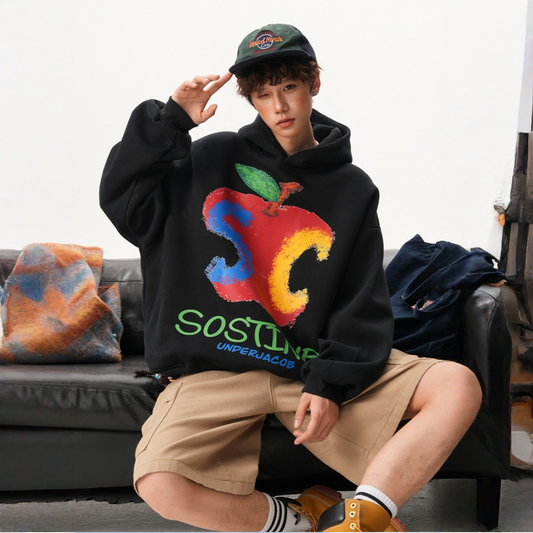 【60%OFF⭐️先行スタート!】【トップス】アップルプリント 男女兼用 ゆったり カジュアル パーカー【FCシリーズ】