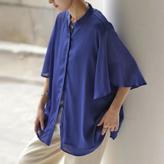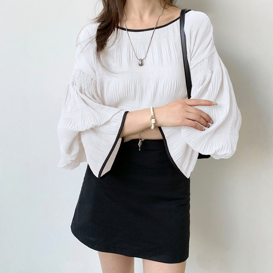 【トップス】プリーツ フレアスリーブ シフォンブラウス 長袖 シャツ 【JZシリーズ】