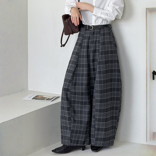 【ボトムス】春 秋 冬 ゆったり ハイウエスト チェック柄 ワイドパンツ 【JZシリーズ】
