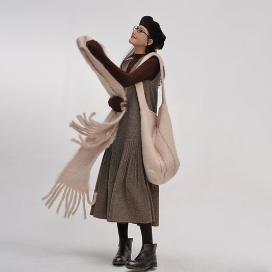 【ワンピース】起毛素材 チェック柄 レトロ クルーネック 長袖 ワンピース 【JZシリーズ】