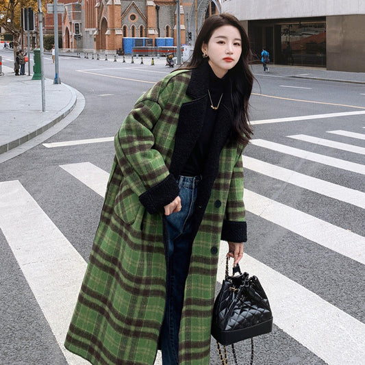 【アウター】2WAY仕様で着回し自在✨!リバーシブル チェック柄 レディース 冬新作 韓国風 ゆったり 厚手 ウールコート【JZシリーズ】