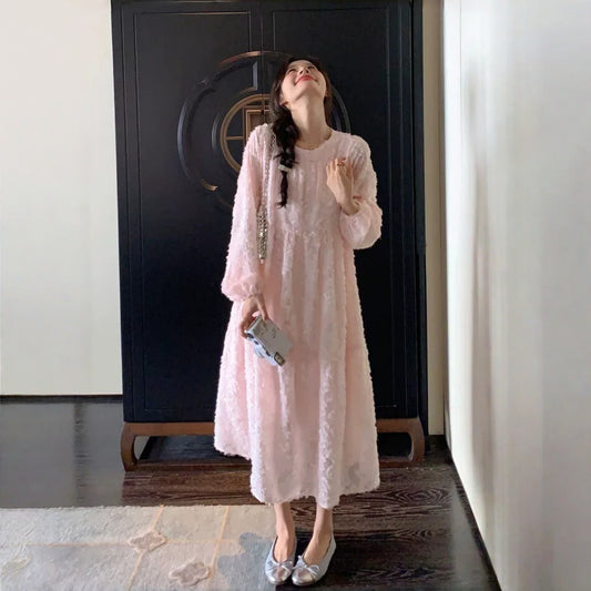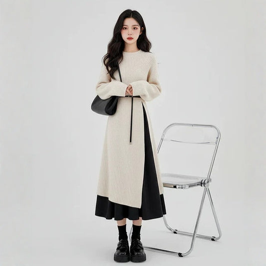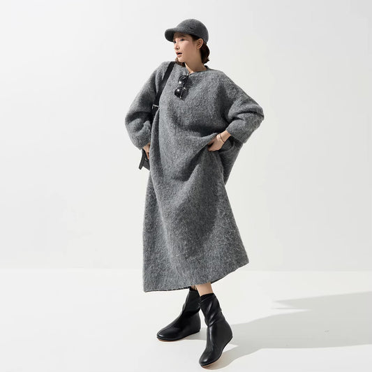1/26~1/29⭐️期間限定60%OFF !【ワンピース】ウール クルーネック ニット長袖ワンピース レディース 秋 韓国風 上品 ゆったり ルーズ ロング丈【JZシリーズ】