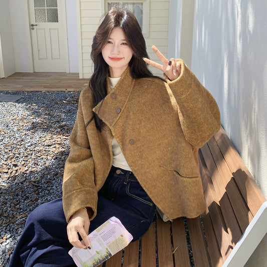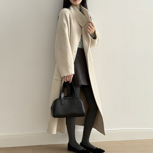 【アウター】🤍上質なダブルフェイスカシミヤウール❄️レディース 冬 高級感 ロング丈 韓国風 スタンドカラー コート【JZシリーズ】