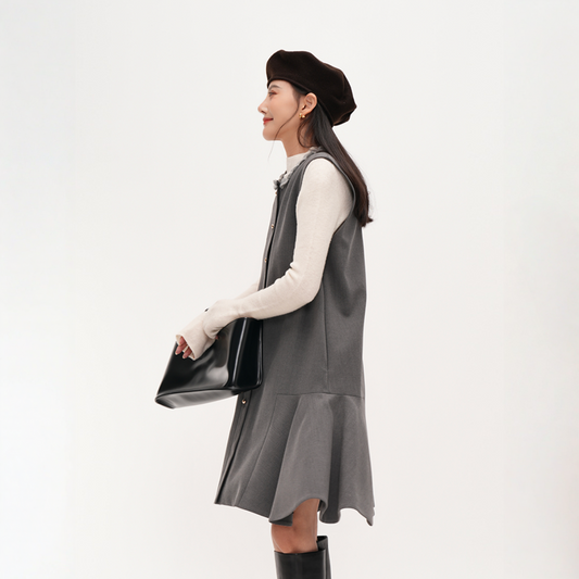 【ワンピース】💎エレガント&高級感 ノースリーブワンピース 秋冬 レディース フレンチ風 ベストワンピ 【JZシリーズ】