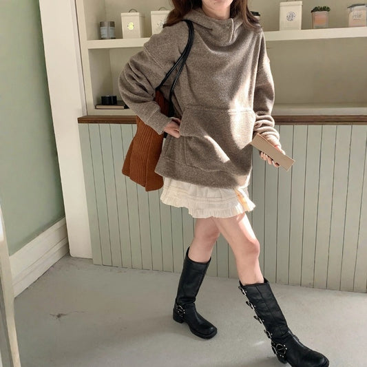 【60%OFF⭐️早い者勝ち】【ワンピース】フーディー無地 長袖ワンピース レトロ×フェミニン 小洒落ムード【JZシリーズ】