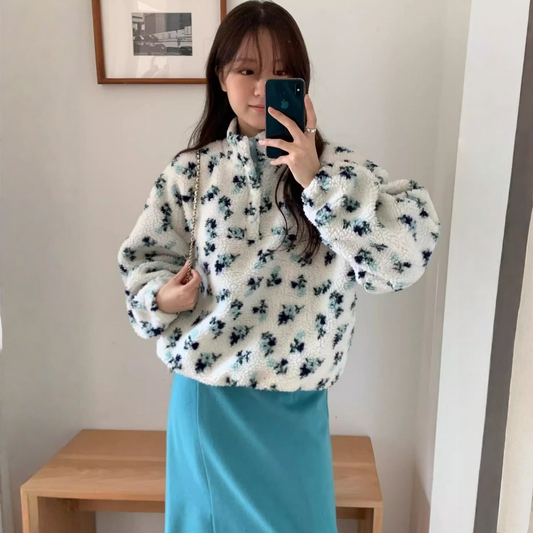 【アウター】レトロ 花柄 ボア 春 秋 冬 立襟 ジャケット 【JZシリーズ】