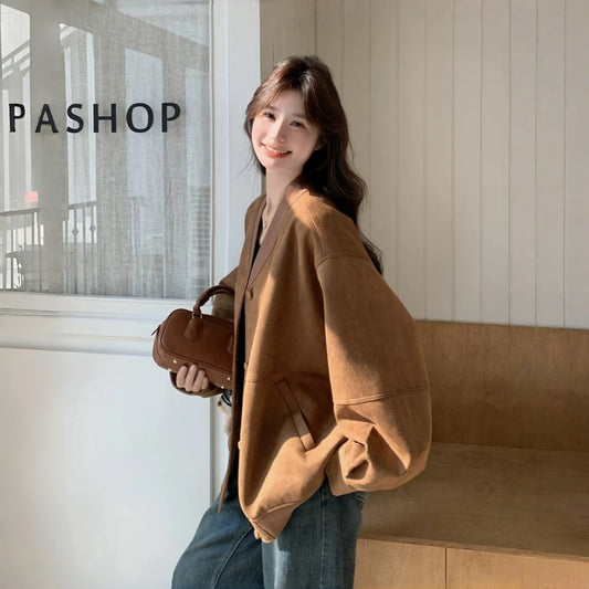 【アウター】アメリカン スエード ゆったり リラックス 春 秋 冬 合わせやすい ジャケット【JZシリーズ】
