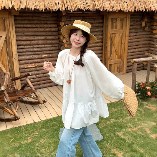 【60%OFF⭐️早い者勝ち】【ワンピース】ゆったり 大きいサイズ ピンチバック チュニックドレス シンプル カジュアル 通勤 スウィート 長袖 ワンピース【JZシリーズ】