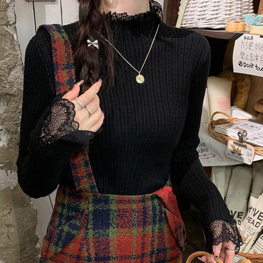 【トップス】超万能!フレンチロマン レースフリル付き ニットインナー コーデ【JZシリーズ】