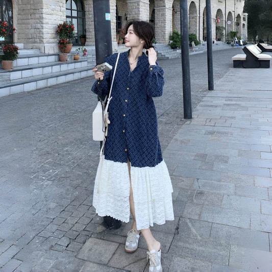 【ワンピース】シャネル風 切り替えし レース 合わせやすい 長袖ワンピース【JZシリーズ】