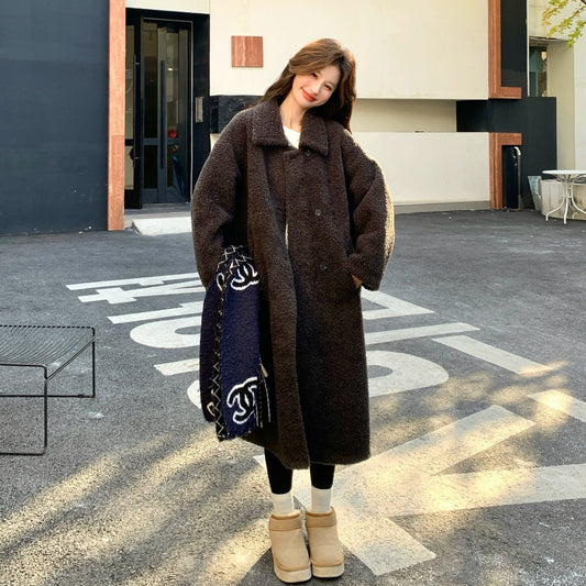 【アウター】ブラウン ムートン調 ミドルコート レディース 冬 あたたかい 着回し【JZシリーズ】