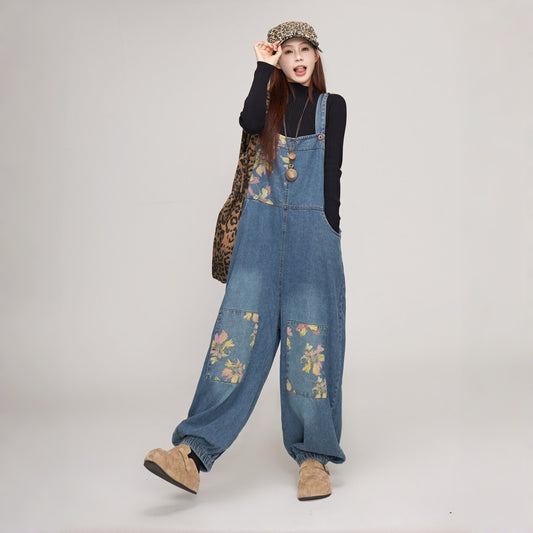 【ボトムス】トレンドレトロ オーバーサイズ 大きな花びら柄 オールインワン【SHシリーズ】