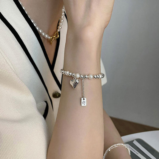 【🎁 B2G1|先行スタート!】【グッズ】レトロ ハート パール ビーズ バングル ブレスレット