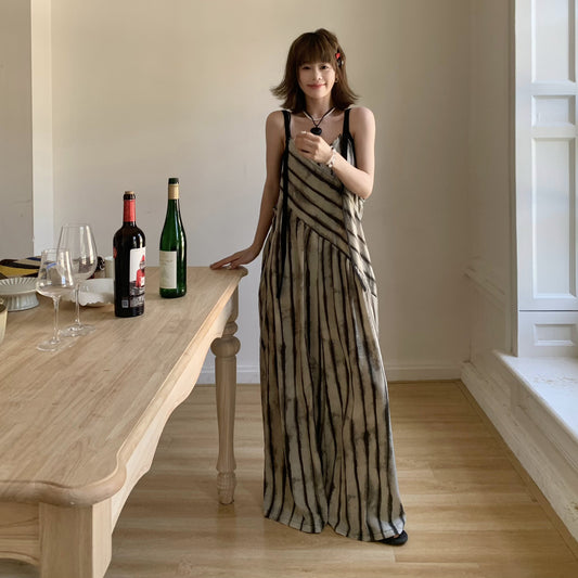 【ボトムス】夏新作 ルーズシルエット オーバーサイズ ストライプ キャミサロペット ワイドパンツ 【SHシリーズ】