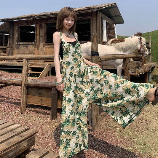 【ワンピース】夏 リゾート風 花柄 ゆったり カジュアル オールインワン【SHシリーズ】