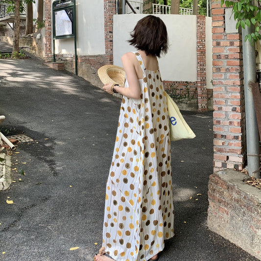【ボトムス】夏新作 ゆったりレトロ水玉キャミサロペット Vネック オールインワン【SHシリーズ】
