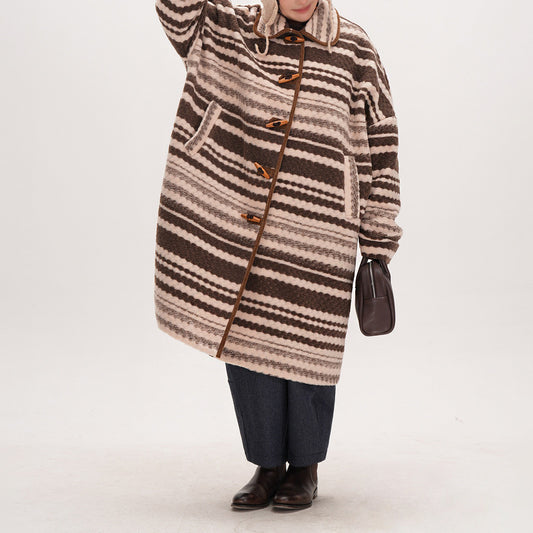 【アウター】レトロストライプ ウール調コート ミディ丈 ゆったり シルエット 長袖 トグルボタン 大人クラシック【JZシリーズ】【15~20日内発送】
