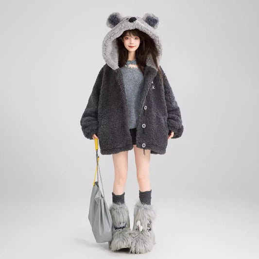 L~4XL【アウター】可愛いくま フード付き ボアコート レディース 冬 もこもこ 厚手 大きいサイズ【FCシリーズ】
