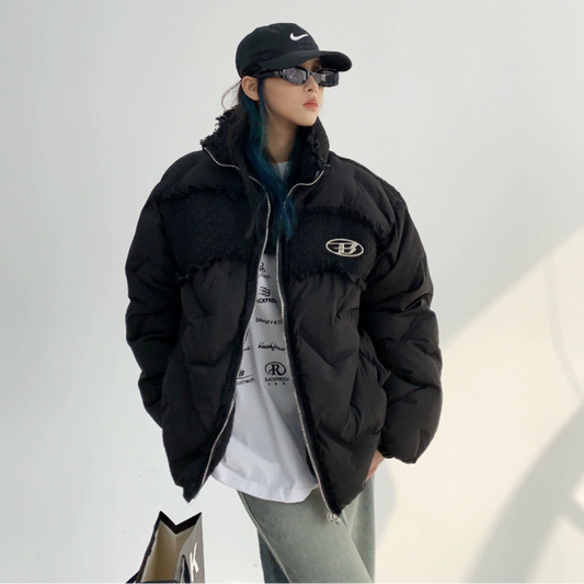 【アウター】 バイカー風レトロ フード付き 🔥 ルーズ中綿ジャケット 厚手 綿入れコート【FCシリーズ】【15~20日発送】