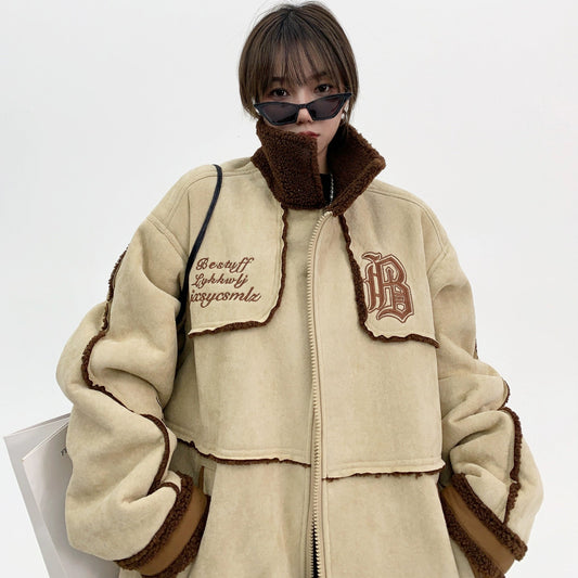 【アウター】春 秋 冬 アメリカン ヘビー 厚手 スエード レトロ ゆったり 刺繍 綿ジャケット【FCシリーズ】