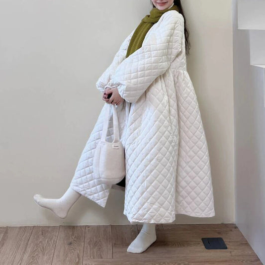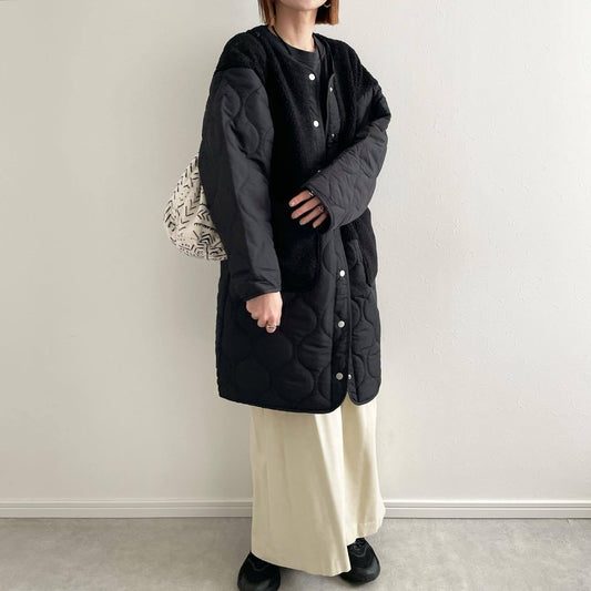【アウター】秋冬 中綿入り ロング スクエアネック 綿入れコート