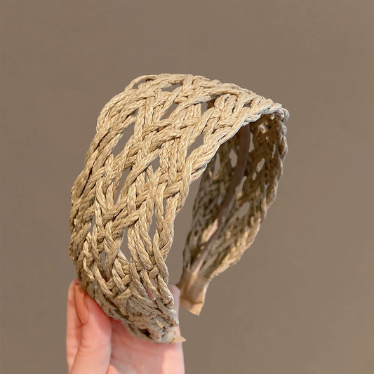 【グッズ】エレガント リゾート風 旅行 夏 藤編み ヘアバンド ヘアアクセサリー /幅5.5cm